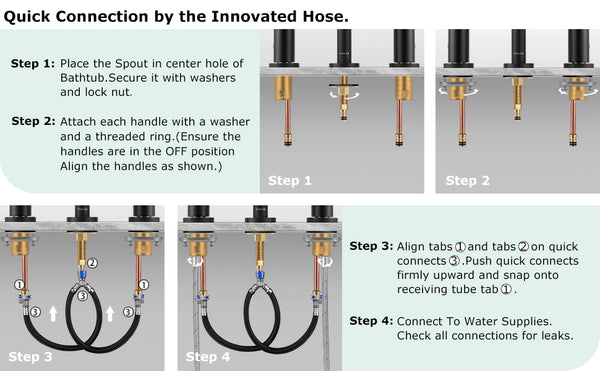 Design to Easy Installation for Saving Plumbing Installation Fee - This 3-Piece bathroom sink faucet with rough-in valve, no more valve required to complete installation. Just join three separated pieces of faucet with "Y" shaped quick connect mixer hose and cUPC certified water supply lines.