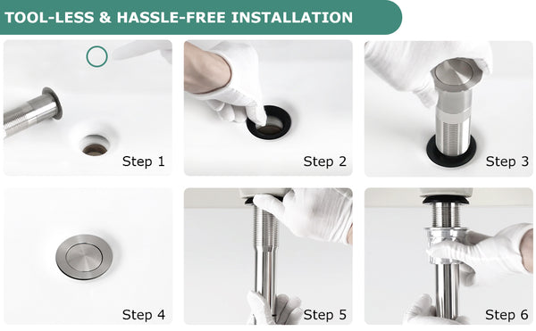 - NO MORE CLOGGING - The push button sink drain with build-in strainer for collecting hairs or debris. Detachable design for easy cleaning.