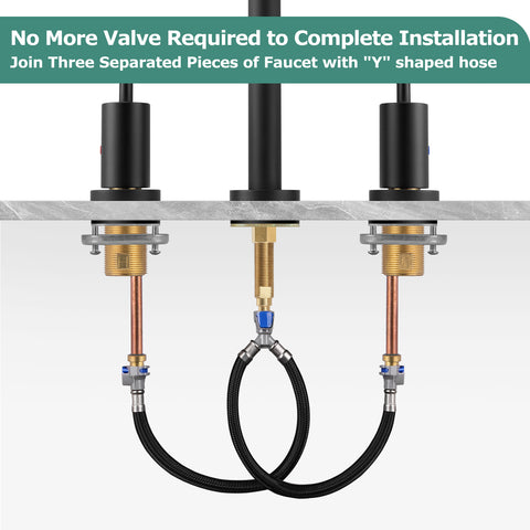 - Connect separate faucet pieces just by one "Y" shaped hose. No valve required to complete installation.