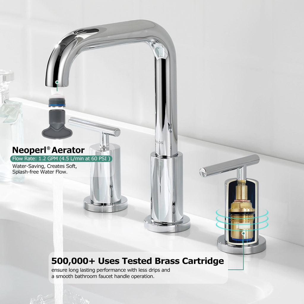 - Water-efficient - This lavatory faucet equipped with branded aerator, providing a clear and aerated stream (Max. Flow rate: 1.2 GPM (4.5 L/min) at 60 PSI), meeting the criterion of the California Energy Commission.