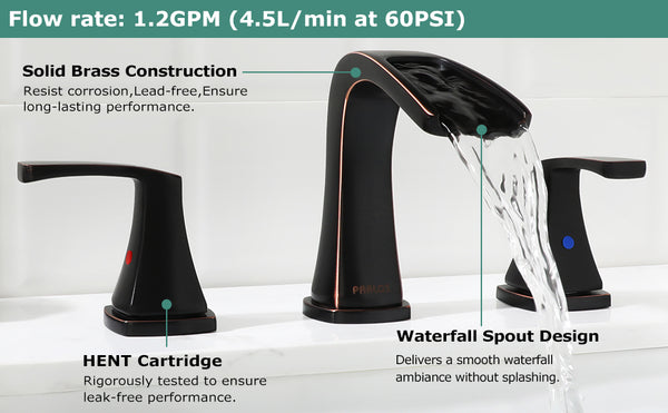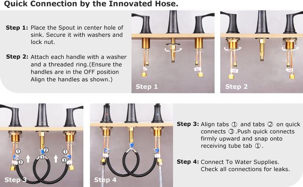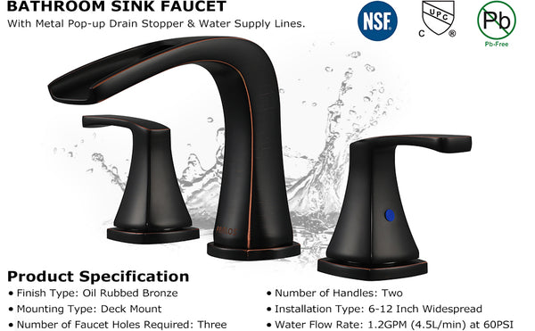 - Quick & Easy Installation: 3-hole deck mount compatible with Widespread installations at any distance between 6 and 12 inches.