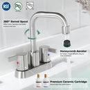 - 3-hole mount with 4-inch centerset design and only 3 parts sink drain stopper for quick and easy installation.