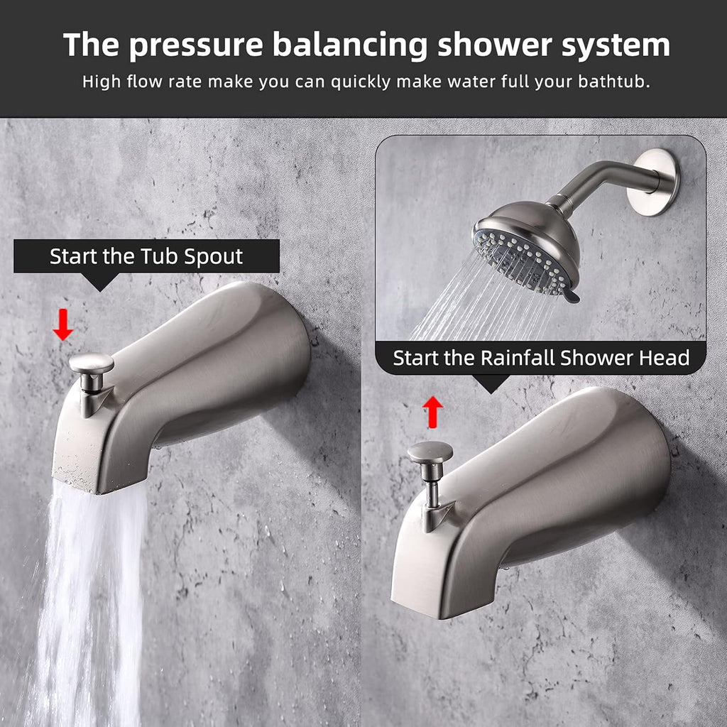 - 【Comfortable and Safe Shower】--The pressure balancing shower system ensures a consistent shower temperature by balancing the pressure of both hot and cold water,so no sudden temperature changes from toilet flushing or running appliances,helping to protect you and your family from being scalded due to sudden changes of pressure of hot or cold water.