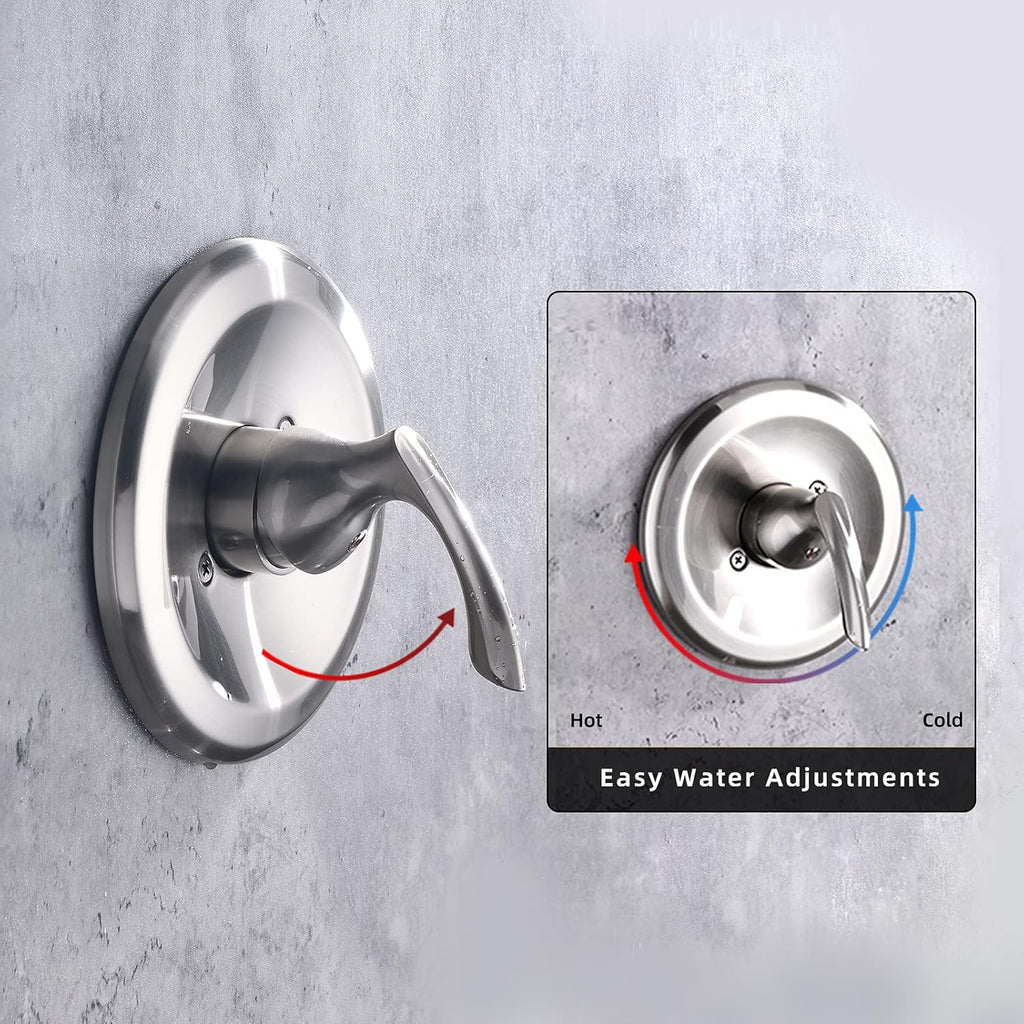 - 【 Premium Quality】--The brushed nickel shower faucet set with valve is constructed of high-purity brass, there is no bursting or leaking in extremely hot or cold environments, ensuring strength and long lifetime.