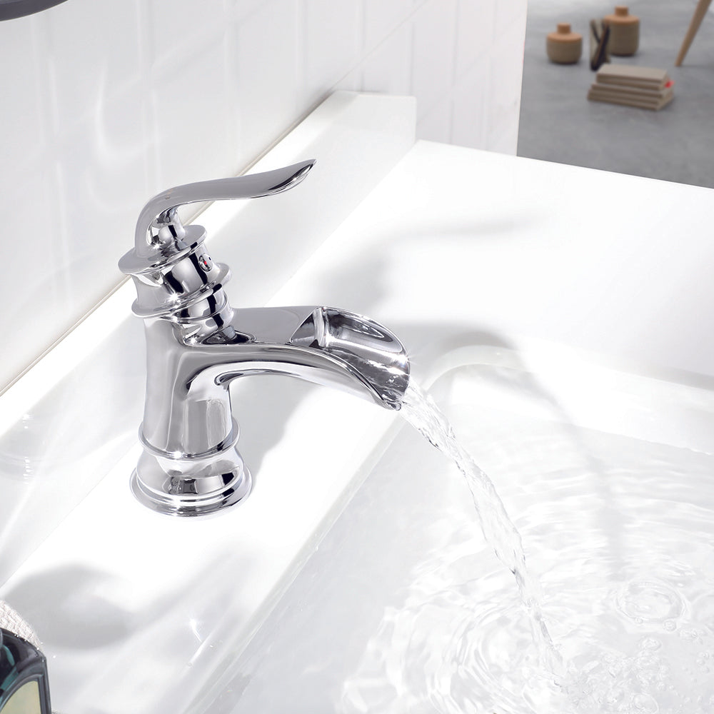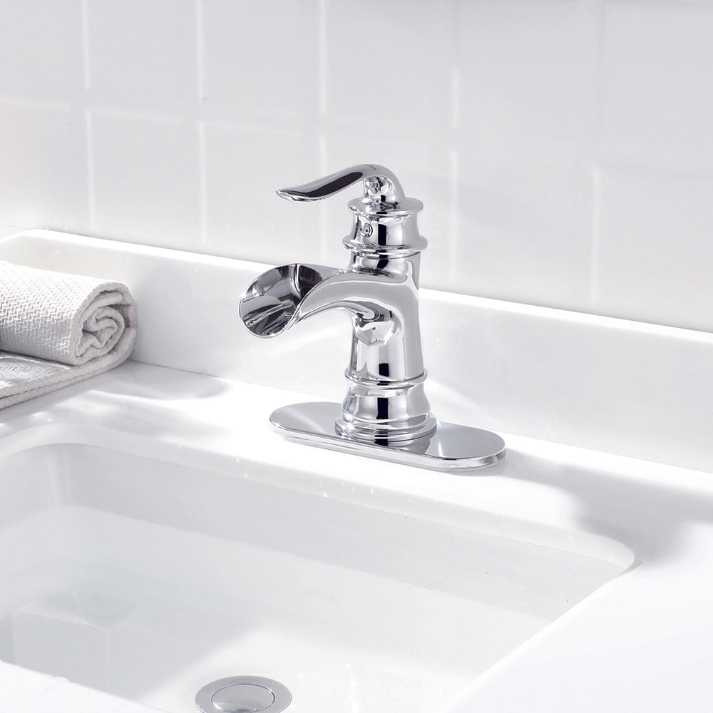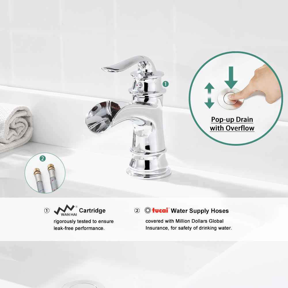 PARLOS Single Handle Bathroom Faucet, Waterfall Sink Faucet with Pop Up Drain, Escutcheon and Cupc Water Supply Lines, Chrome, 1434901