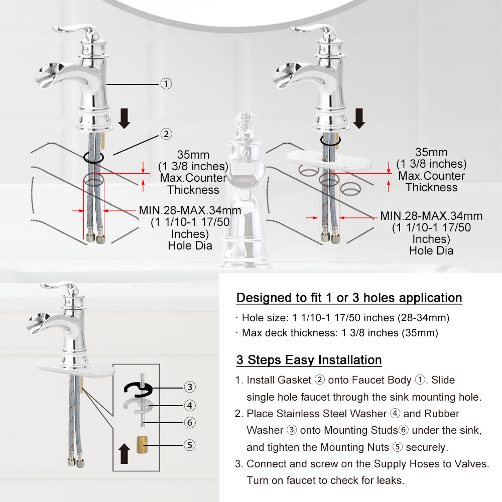 • 6.299 INCH COVER DECK PLATE INCLUDED. Fits 1 Or 3 HOLE INSTALLATION.