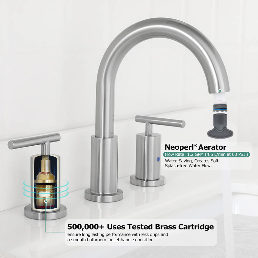 - High Arc Gooseneck Spout provides ample space for washing and cleaning in your bathroom sink, vanity, or powder room. Streamline design brings an elegant style and complements most decor styles.