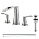 PARLOS Waterfall Widespread Bathroom Sink Faucet 2 Handles with Pop Up Drain & cUPC Faucet Supply Lines, Brushed Nickel, 1.2GPM, Demeter 1431802P