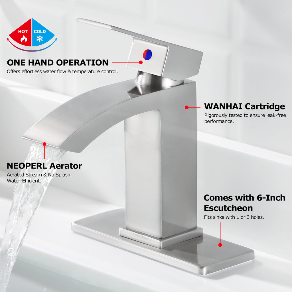 - Designed to fit 1 or 3-hole configurations. Deck Plate Included for 3-hole 4" installation.